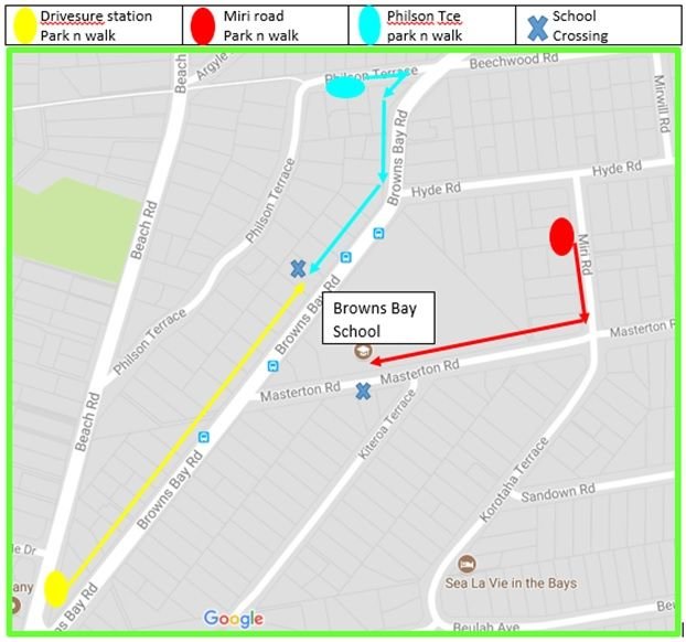 · Bikes and scooters must be walked across the crossings and into school grounds.